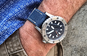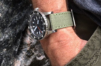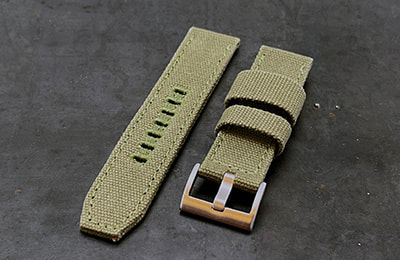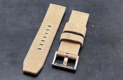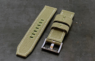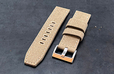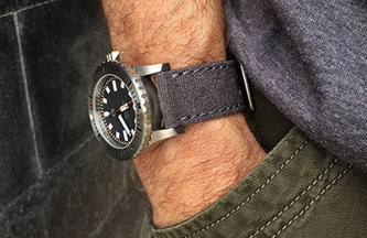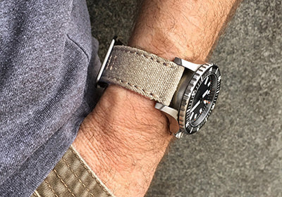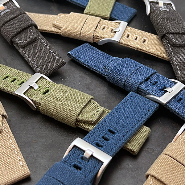Constructed of cotton canvas, the CS1 is a perfect complement to any dive, military or pilot watch. The pliable canvas conforms easily to the wrist and gradually breaks in until it wears like your favorite pair of jeans, offering a fully submersible, light weight, casual alternative to a stainless bracelet.