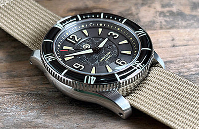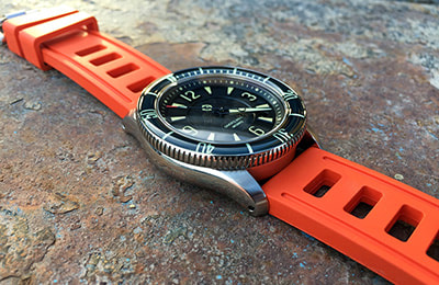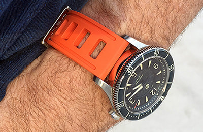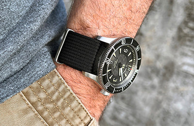 • The rubbercanvas and leather straps pictured in some photos at left, as well as the NS1 and NS3 nylon straps, are available separately and at a discount when purchased with a watch.