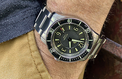 Located off the northeastern coast of Taiwan, the Japanese island of Miyako is ringed with white sand beaches and surrounded by crystal clear blue-green waters ideal for snorkeling and freediving. This idyllic Japanese island seemed the perfect inspiration for the HELM Miyako, which is fitted with the venerable Miyota 9015 movement. The watch also features a 316L stainless steel case and bracelet, screw-down caseback and crown, domed sapphire crystal and bezel, highly legible dial and a 200m depth rating. With a case diameter of 40mm, the ISO 6425 compliant Miyako is perfectly sized for any adventure, in or out of the water.