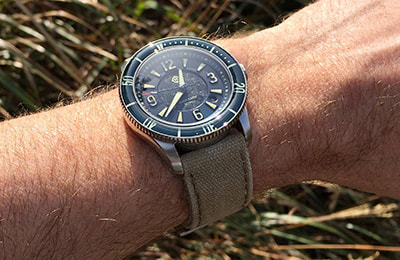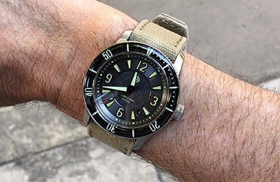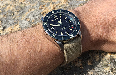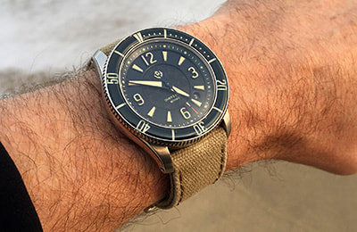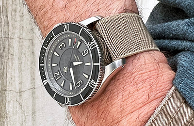 Available with a gray or blue dial, the Miyako also includes the NS2 Nylon Strap―an excellent option in the water and a casual, lighter weight alternative to the included stainless bracelet. With a standard 22mm lug width, the Miyako can also be dressed up or down with limitless aftermarket straps, including our own NS1 and NS3 nylon straps, RS1 and RS2 rubber straps, CS1 canvas strap and LS1 and LS2 leather straps.