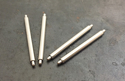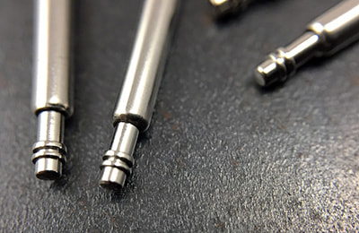 These spring bars were included with HELM watches for several years (and are still included with some watches) before we switched to the shoulderless spring bars above. These spring bars have shoulders, so they’re useful if you have a watch without drilled lugs. The tips of these spring bars also have a bit more “wiggle” which can sometimes make bracelet installation easier.