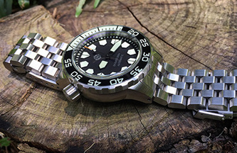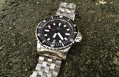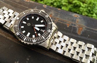A chunky, 5-link stainless bracelet with solid case links and a full brushed finish, the SS1 comes standard with the HELM Vanuatu, but with the appropriate case links can also be fitted to the Khuraburi and is available in a 20mm width to fit the Komodo. Three removable links on each side are secured with single sided screw pins for simple sizing adjustment.